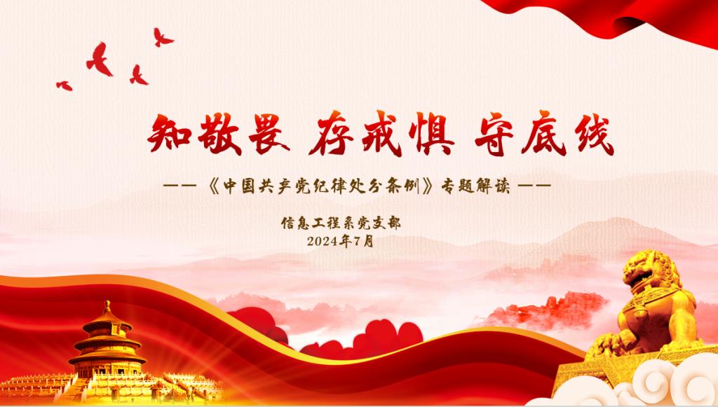 通过此次学习,信息工程系全体党员对新修订的《中国共产党纪律处分条例》有了更加深刻的认识和理解,进一步明确了纪律红线,为加强学院党的建设、推动各项事业发展提供了坚实的思想保障。